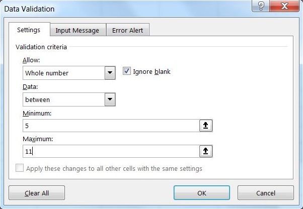 - U poljima Minimum / Maximum upišite vrednosti 5 i 11.